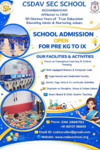 Chhathrapathy Shivaji DAV Secondary School (CSDAV) was started in 1975 by Late Mr. K.B.Nowlay, a visionary who strived to bring quality education at an affordable rates for the public. Till date members of the Nowlay family are committed to improving the education offered to the young minds.